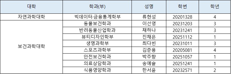 | [2025학년도 2학기] DEAN’S LIST 선정자 안내 | |